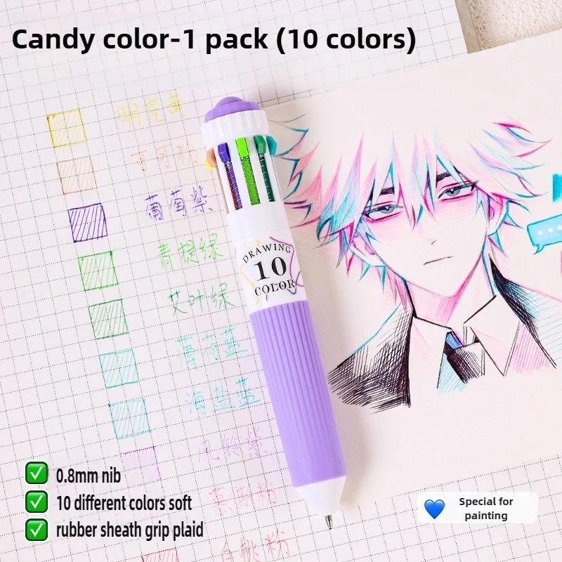 Languo 120/10 Color Ballpoint Pen Cartoon 0.8mm Soft Grip Press Multicolor Writing Pen for Drawing School Supplies Stationery