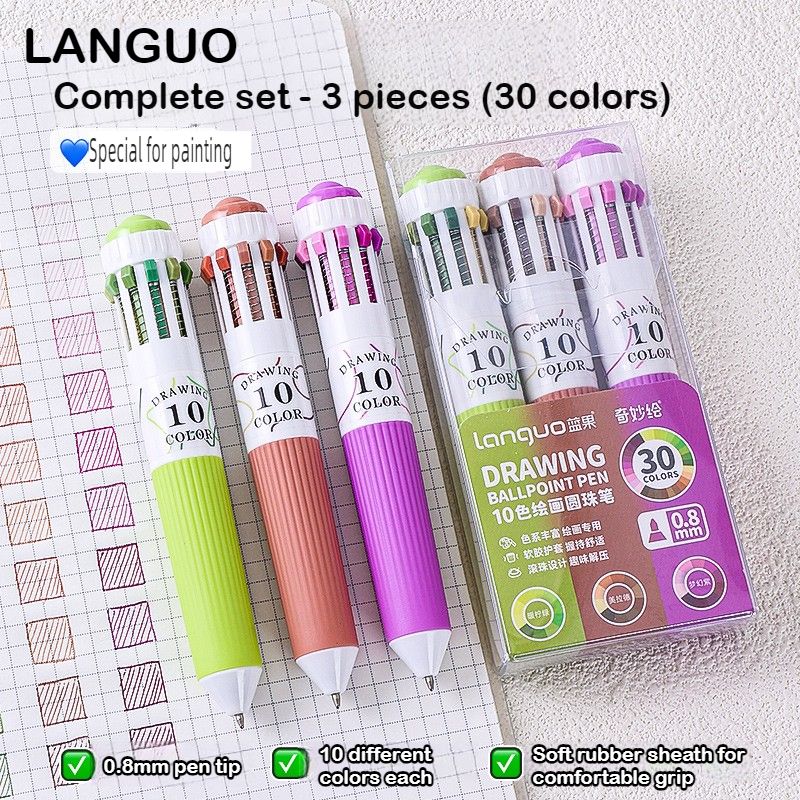 Languo 120/10 Color Ballpoint Pen Cartoon 0.8mm Soft Grip Press Multicolor Writing Pen for Drawing School Supplies Stationery