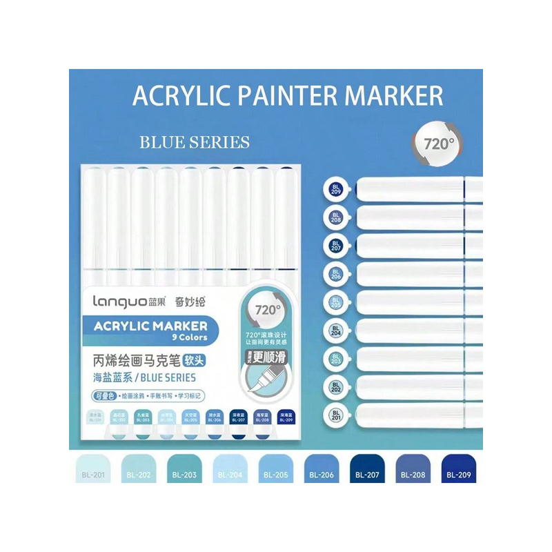 Languo 9pcs/box Soft Brush Acrylic Marker Pen Set,DIY Hand Drawn,Paint Art Markers pens,Student Graffiti Acrylic Paint Pens,M720