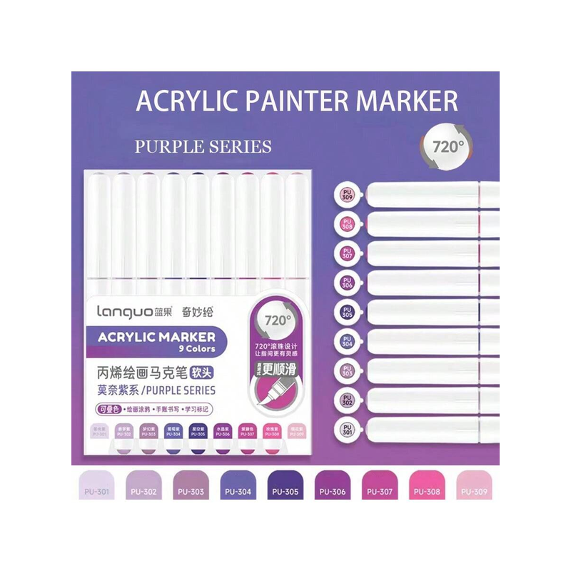 Languo 9pcs/box Soft Brush Acrylic Marker Pen Set,DIY Hand Drawn,Paint Art Markers pens,Student Graffiti Acrylic Paint Pens,M720
