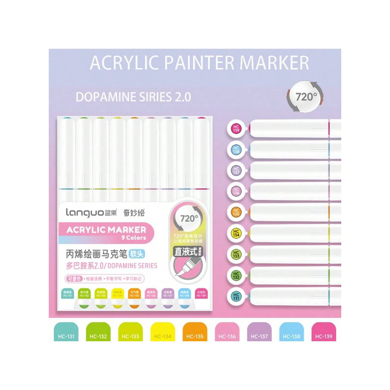 Languo 9pcs/box Soft Brush Acrylic Marker Pen Set,DIY Hand Drawn,Paint Art Markers pens,Student Graffiti Acrylic Paint Pens,M720