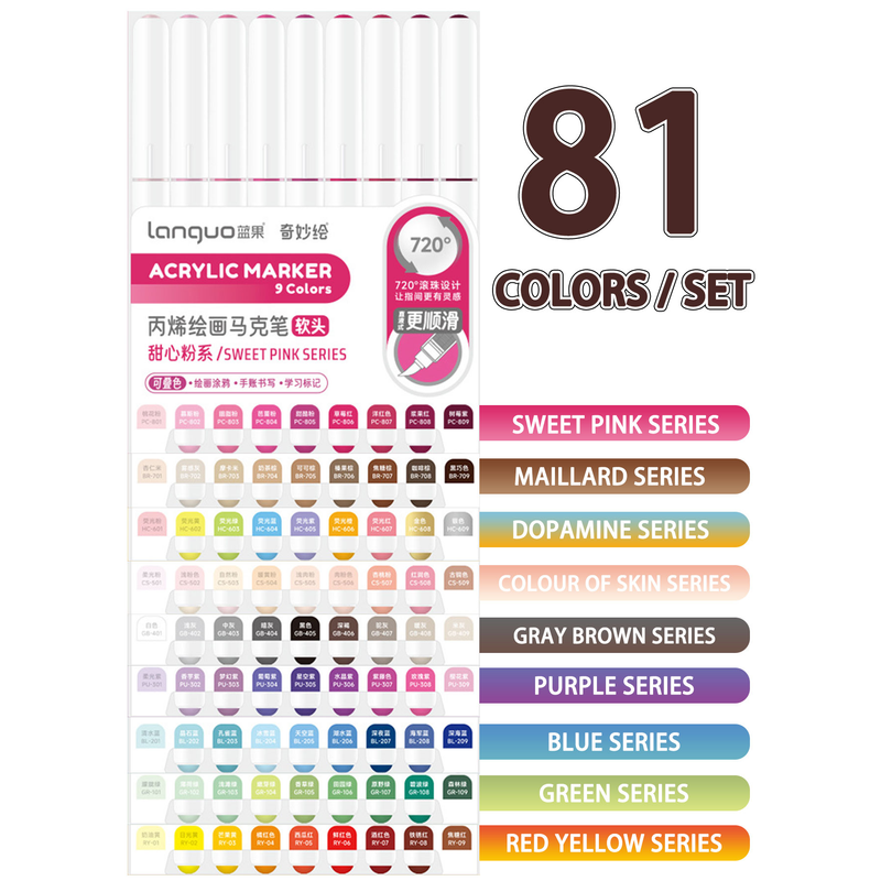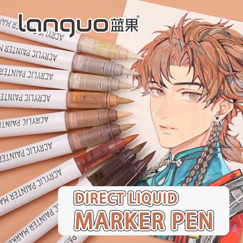 Languo 9pcs/box Soft Brush Acrylic Marker Pen Set,DIY Hand Drawn,Paint Art Markers pens,Student Graffiti Acrylic Paint Pens,M720