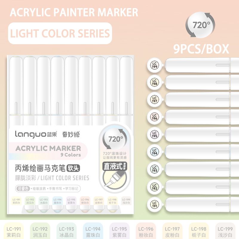 Languo 9pcs/box Soft Brush Acrylic Marker Pen Set,DIY Hand Drawn,Paint Art Markers pens,Student Graffiti Acrylic Paint Pens,M720