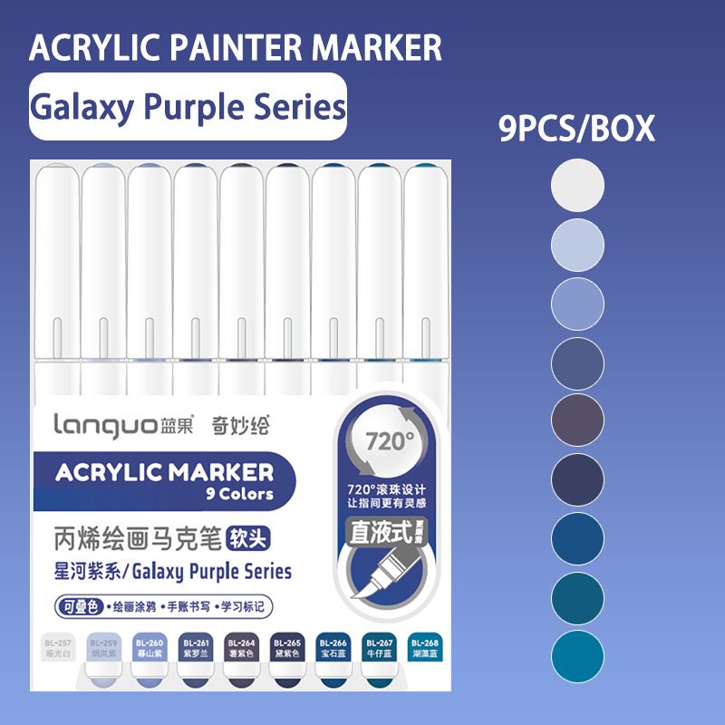 Languo 9pcs/box Soft Brush Acrylic Marker Pen Set,DIY Hand Drawn,Paint Art Markers pens,Student Graffiti Acrylic Paint Pens,M720