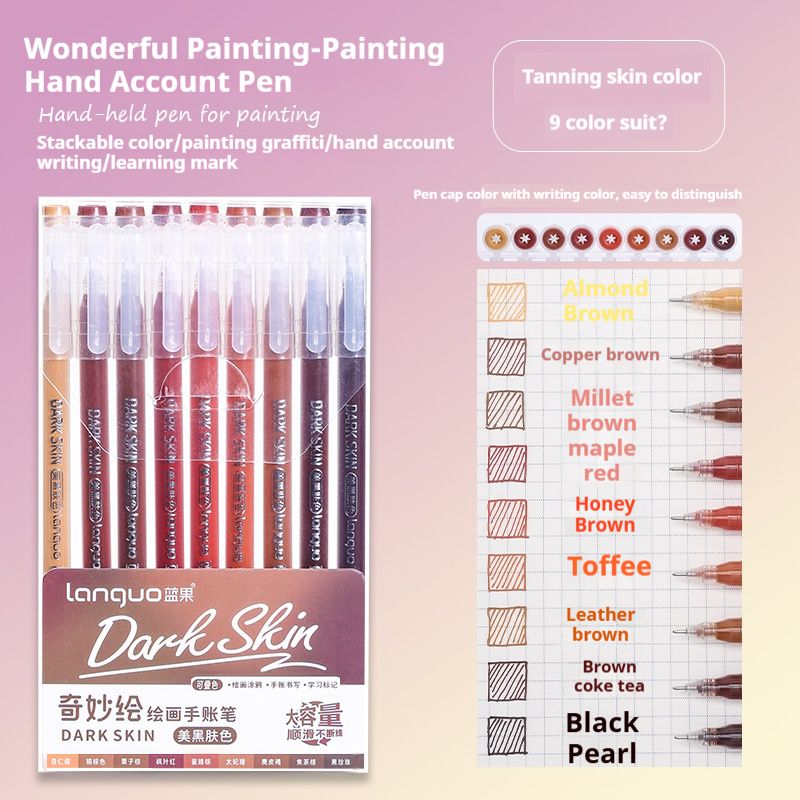 Languo Gel Pen Large Capacity Handbook Pens 6/9Pcs 0.6mm Student Art Diy Doodling Drawing Markers Office Kawaii Art Stationery