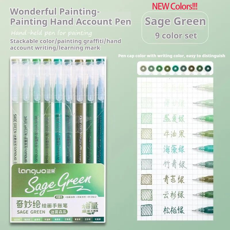 Languo Gel Pen Large Capacity Handbook Pens 6/9Pcs 0.6mm Student Art Diy Doodling Drawing Markers Office Kawaii Art Stationery