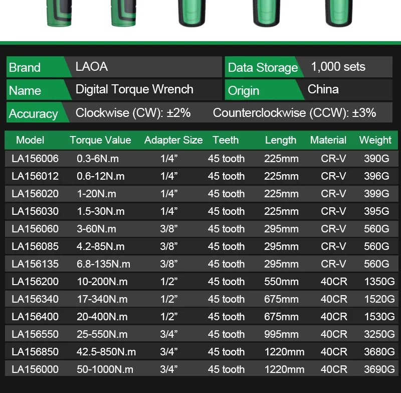 LAOA High Definition Digital Torque Wrench Professional Precision Tool with LCD Display for Automotive Industrial Mechanical Use