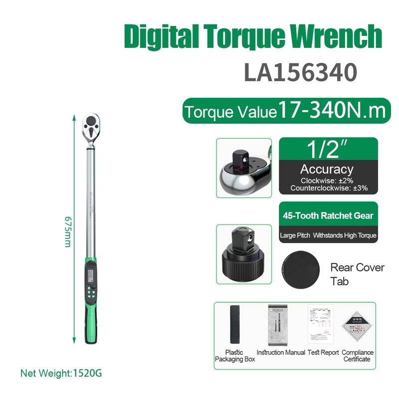 LAOA High Definition Digital Torque Wrench Professional Precision Tool with LCD Display for Automotive Industrial Mechanical Use