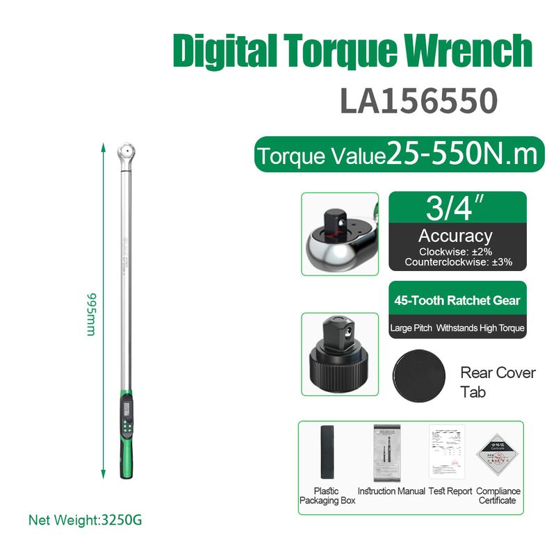 LAOA High Definition Digital Torque Wrench Professional Precision Tool with LCD Display for Automotive Industrial Mechanical Use