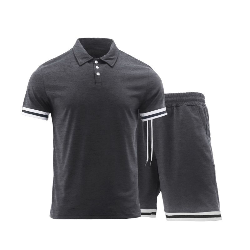 Lapel Button Casual T-shirt Suit Men Dark Gray L