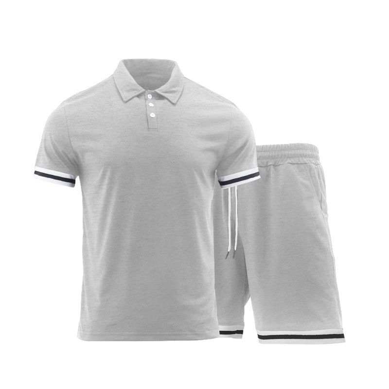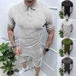Lapel Button Casual T-shirt Suit Men Dark Gray S