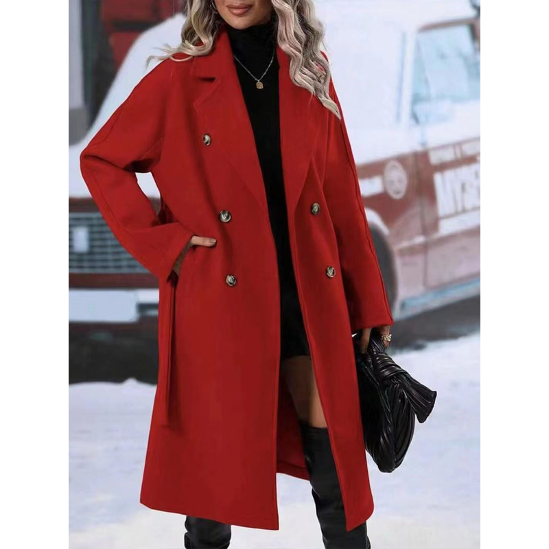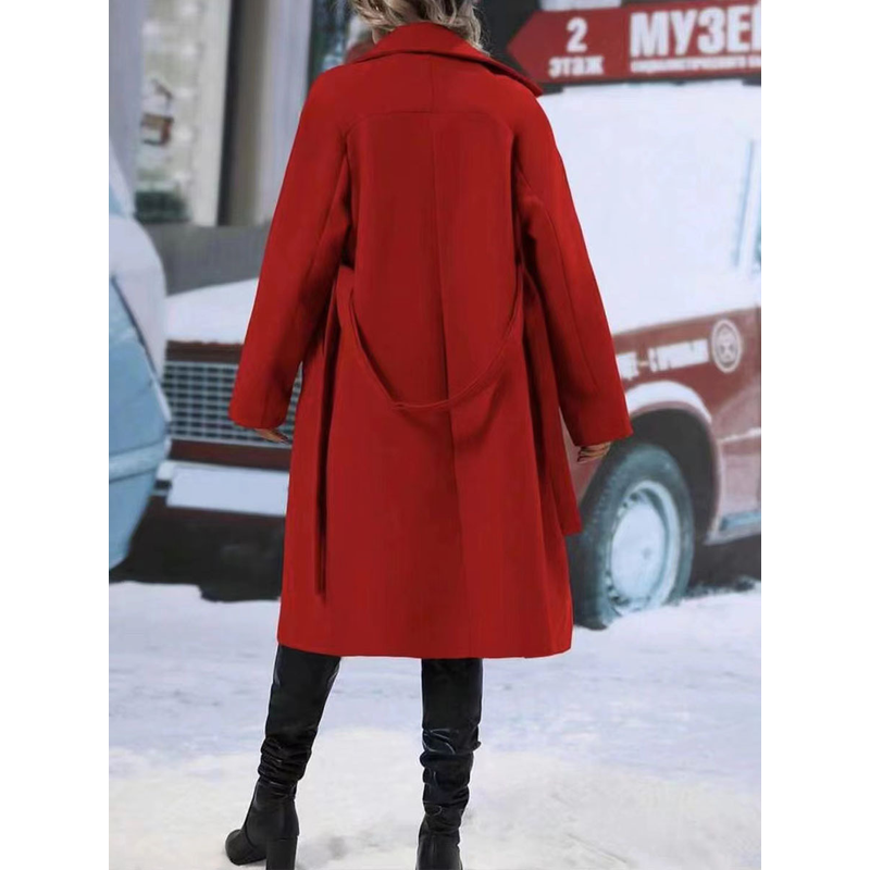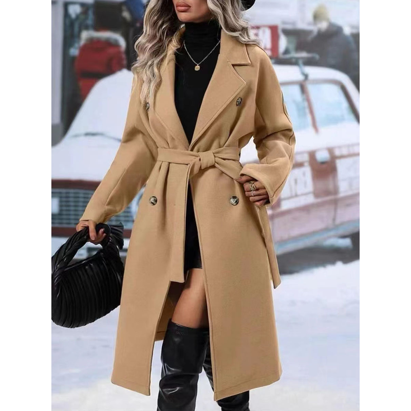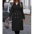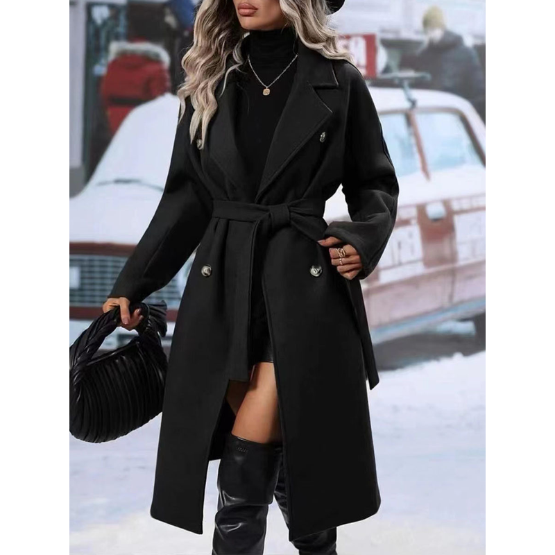 Lapel Double-breasted Trench Coat With Belt Winter Fashion Solid Color Long Jacket Outwear Women Clothing Black M