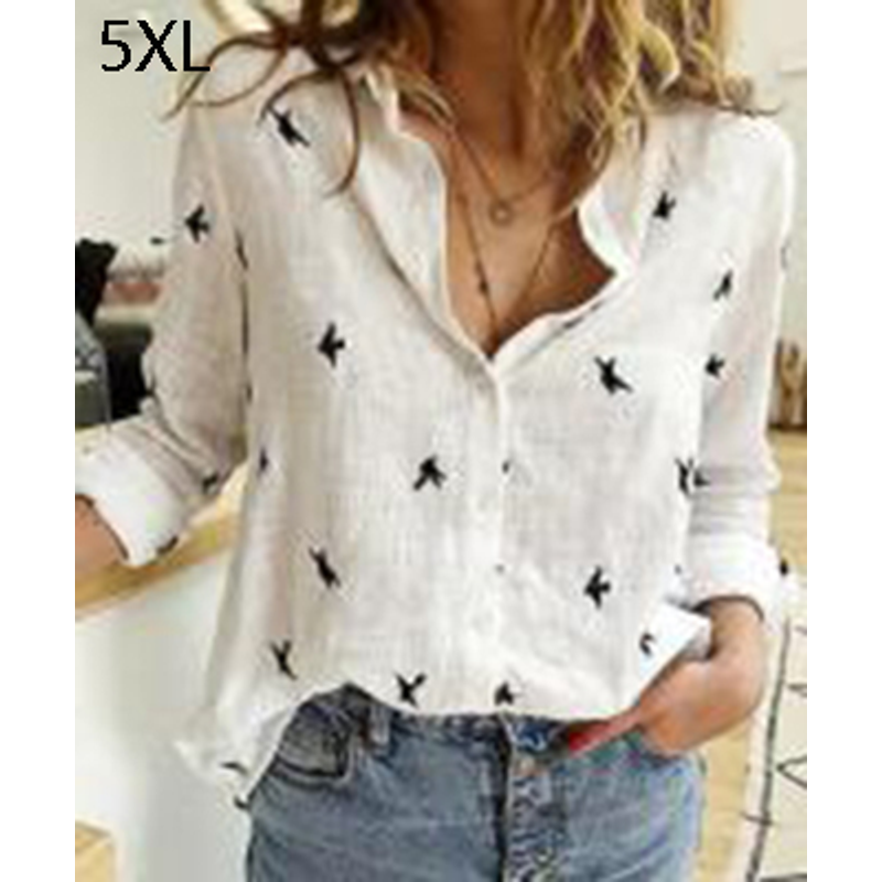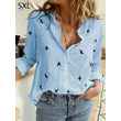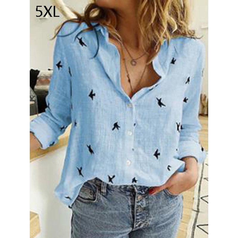 Lapel Long Sleeve Shirt Fashion Solid Color Button Top Women's Clothing 02Blue 5XL