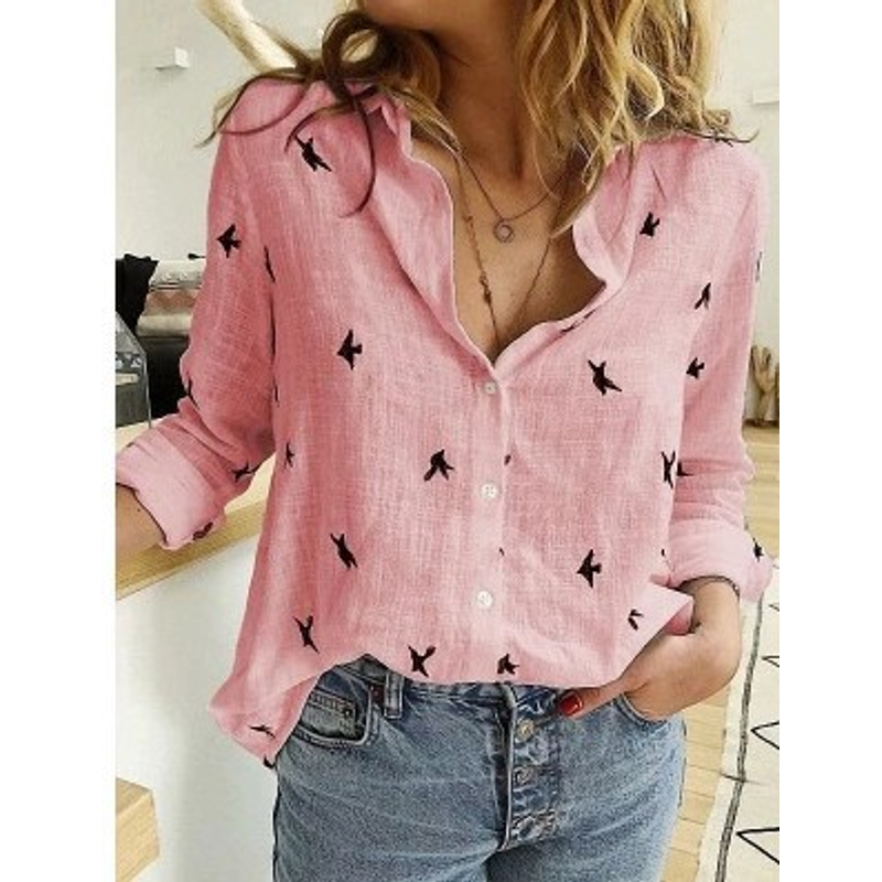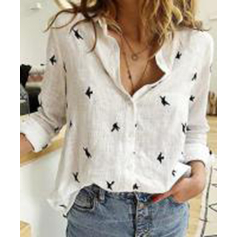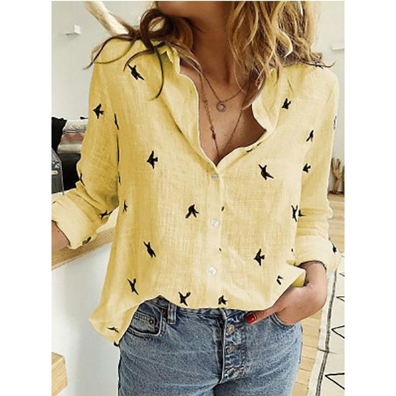 Lapel Long Sleeve Shirt Fashion Solid Color Button Top Women's Clothing Grey S