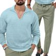 Lapel Long Sleeve Trousers Men's Suit Sky Blue With Gray Green XL