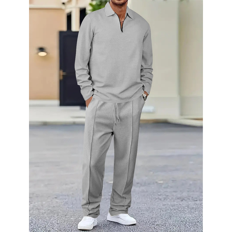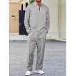 Lapel Long-sleeve Zipper Trousers Casual Suit Light Gray L