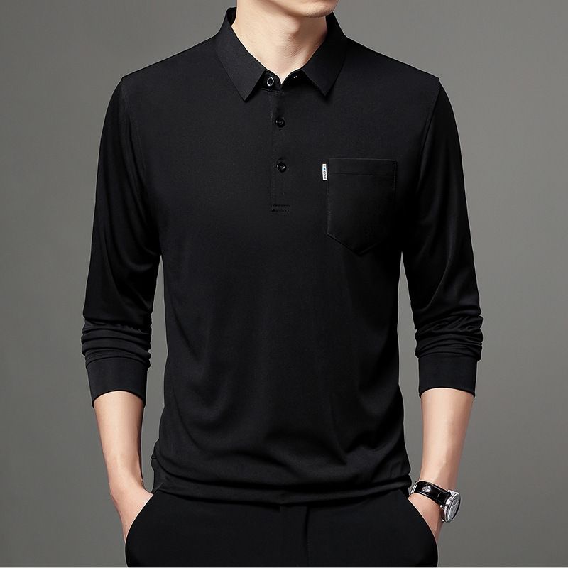 Lapel Real Pocket Long Sleeve Bottoming Shirt Men Black 2XL