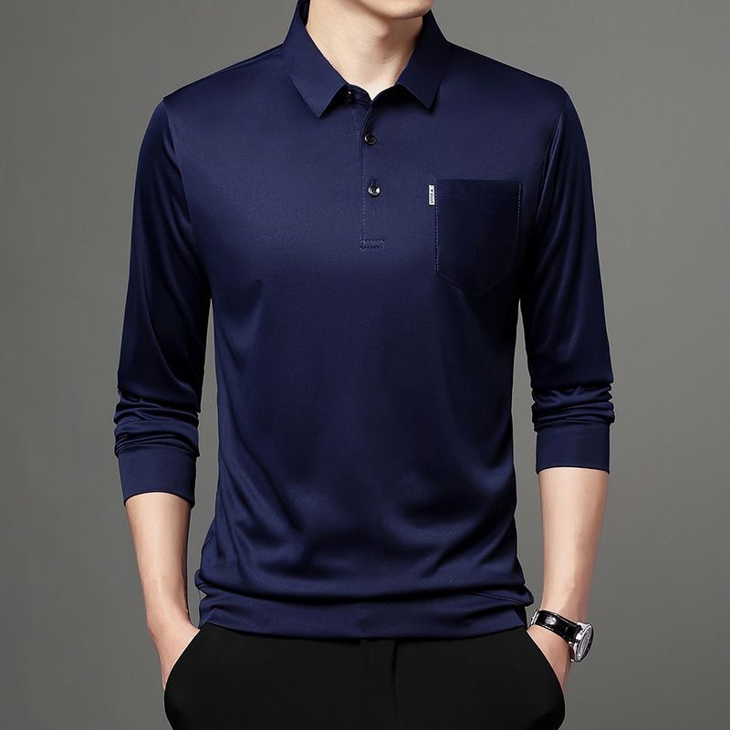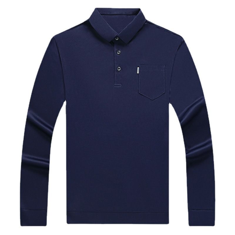 Lapel Real Pocket Long Sleeve Bottoming Shirt Men Black L