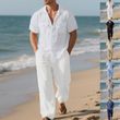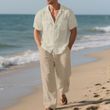 Lapel Shirt Short Sleeve Trousers Suit Men Apricot With Khaki Pants M