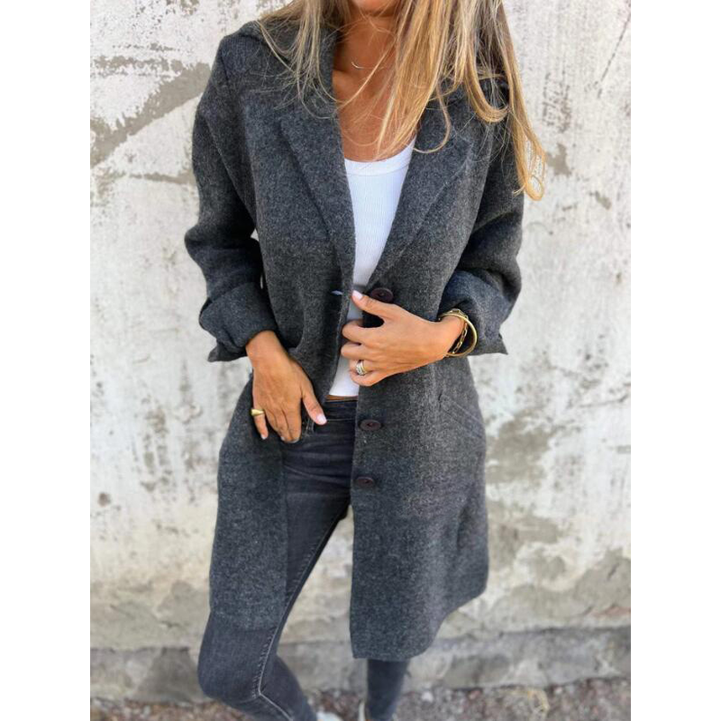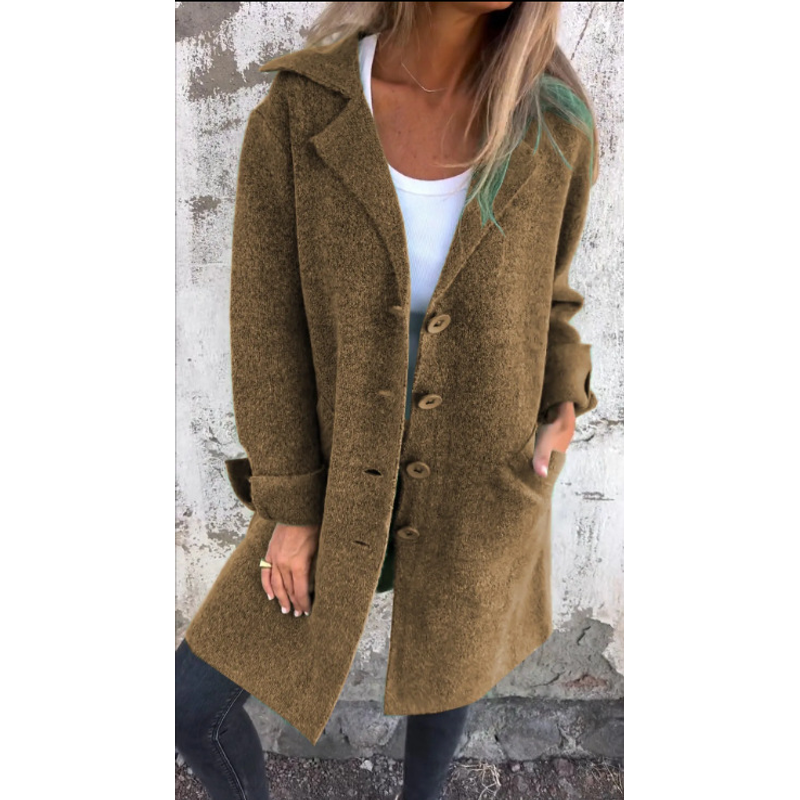 Lapel Single Breasted Cardigan With Pockets Fashion Color Solid Mid-Length Outwear Coat Womens Clothing Brown 3XL