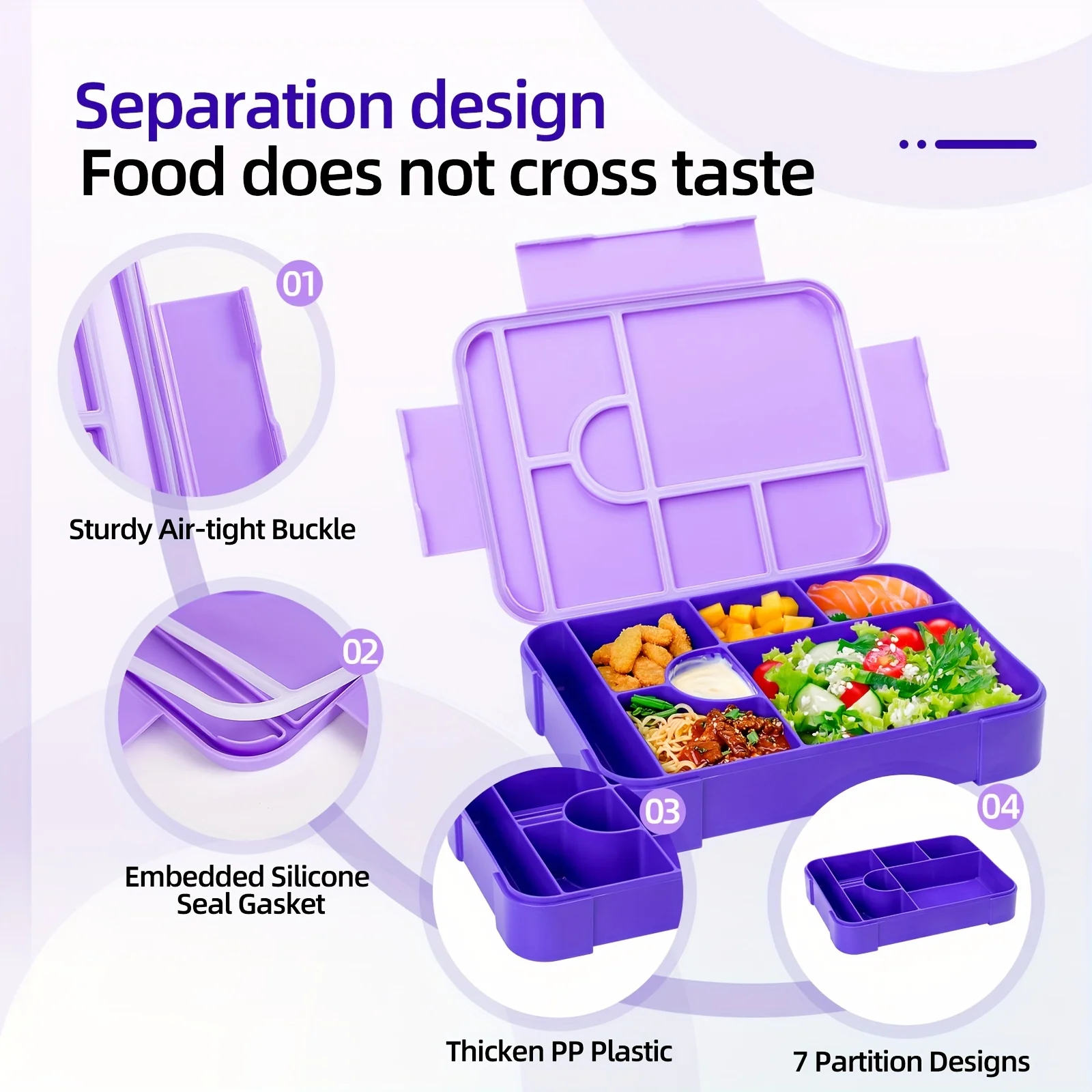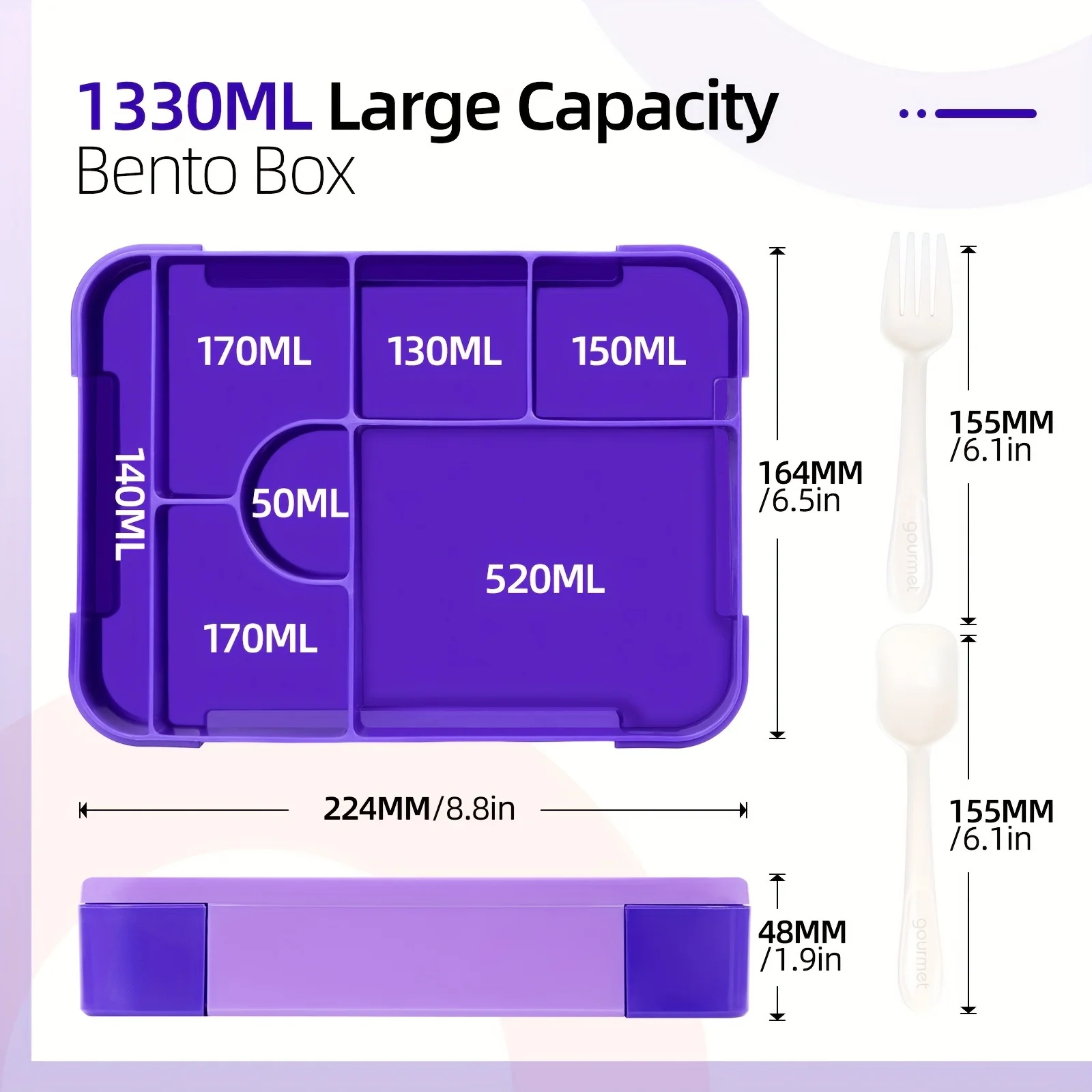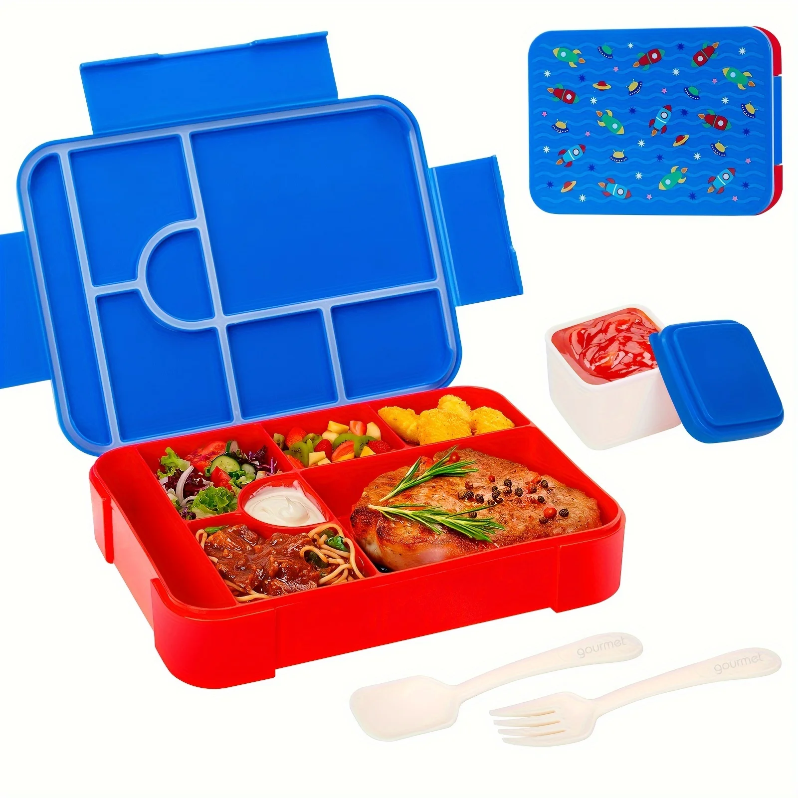 Large Capacity Bento Lunch Box Set with Leak-Proof Sealing Divided Fresh-Keeping Food Container with Fork Spoon for School Kids