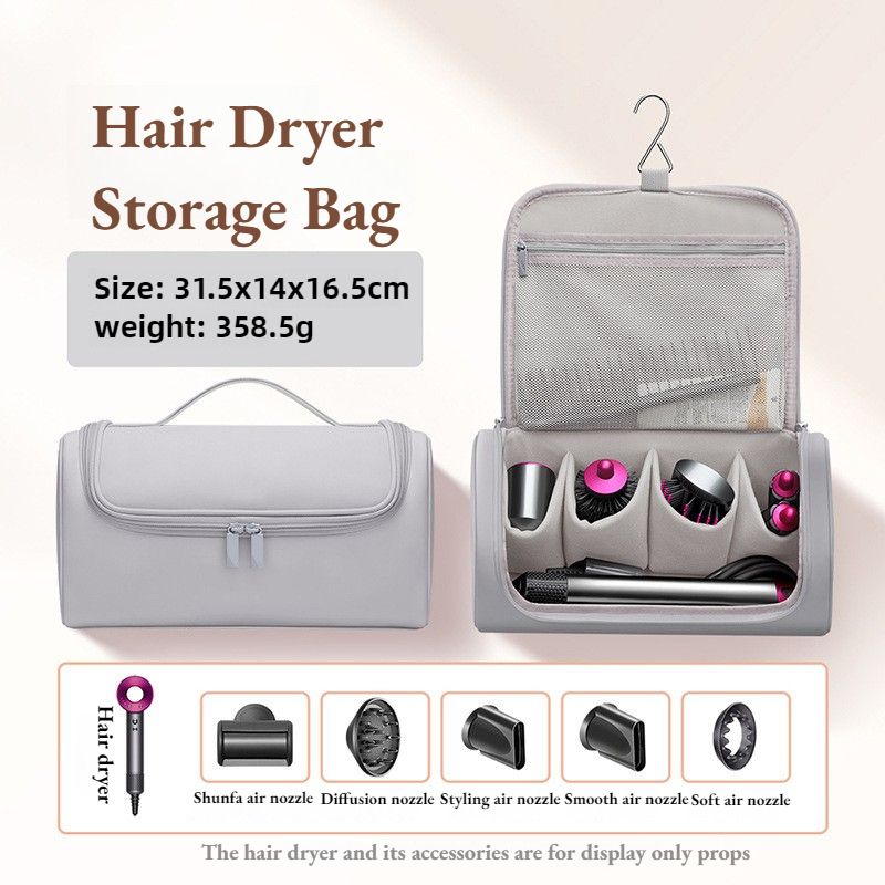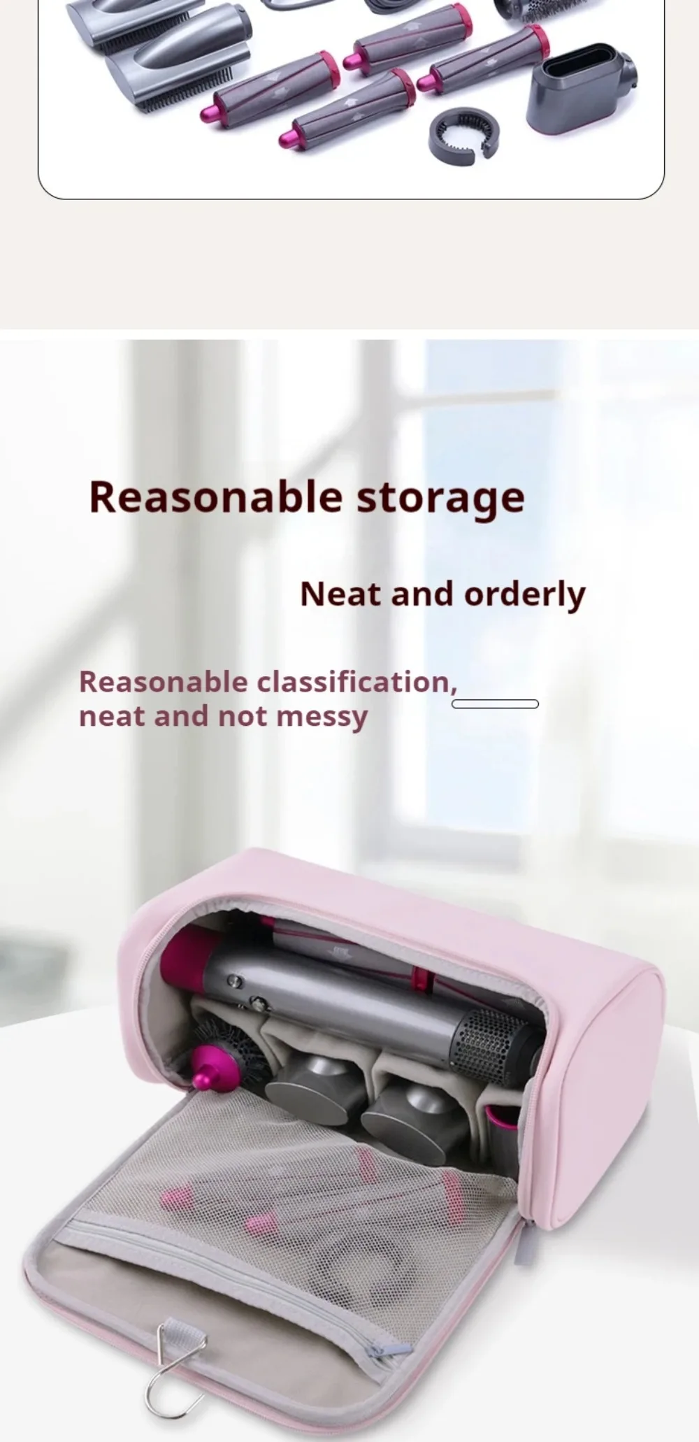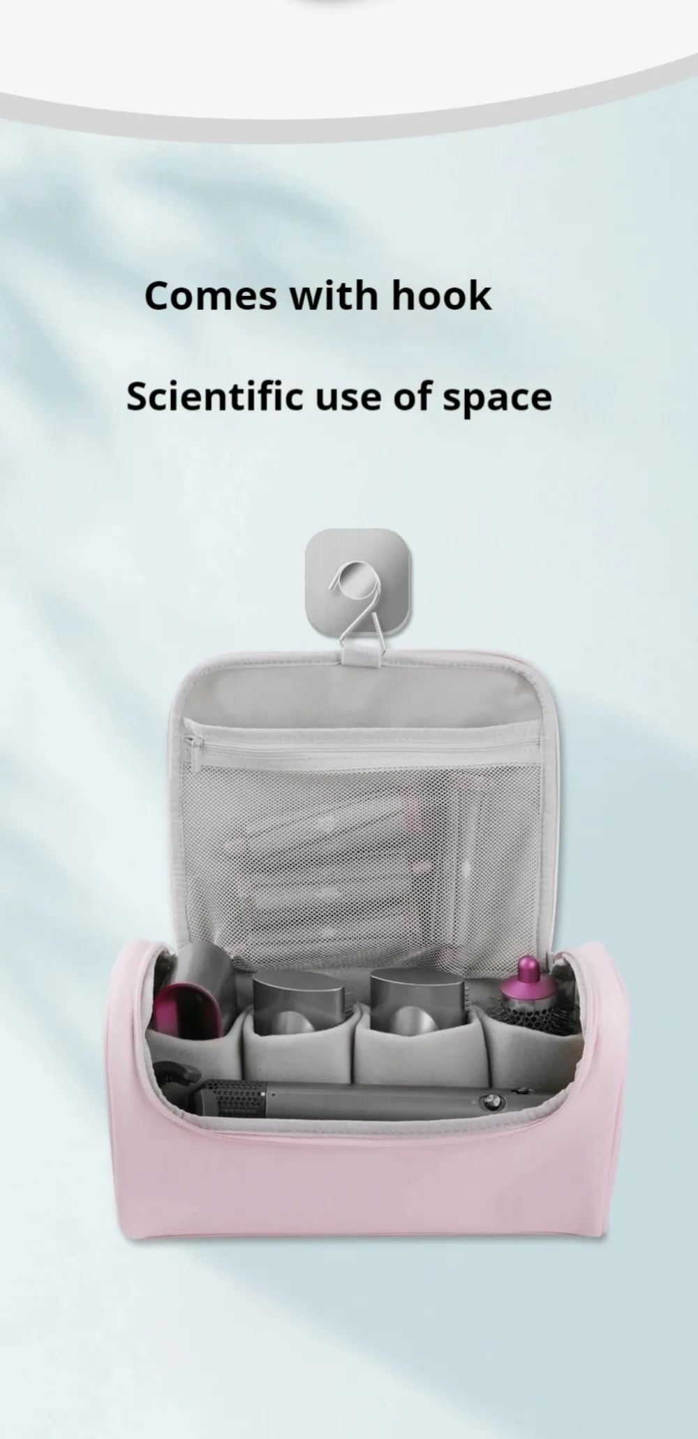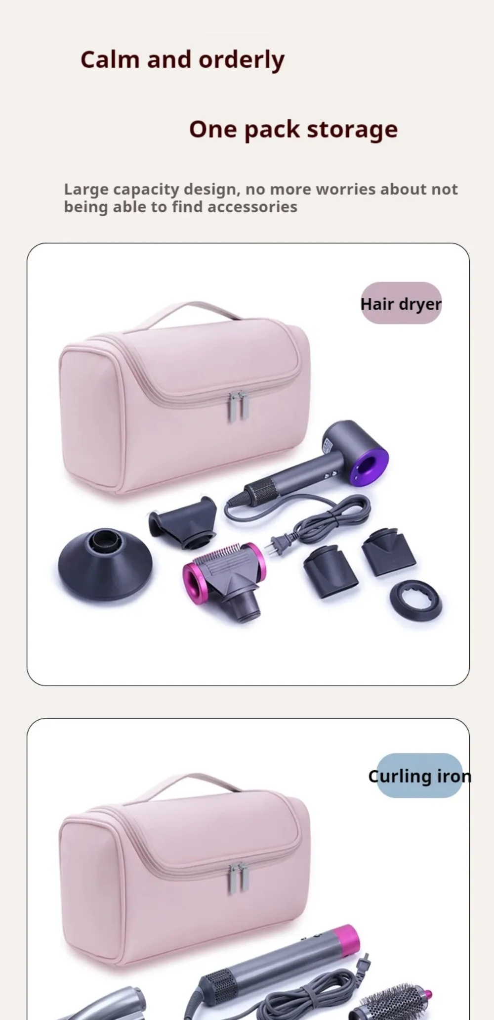 This storage bag offers ample space for your hair dryers and curling barrels, ensuring everything is neatly organized and easily accessible.