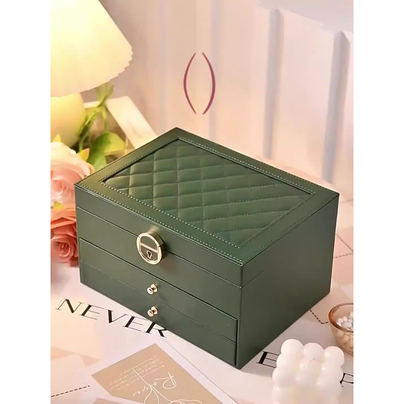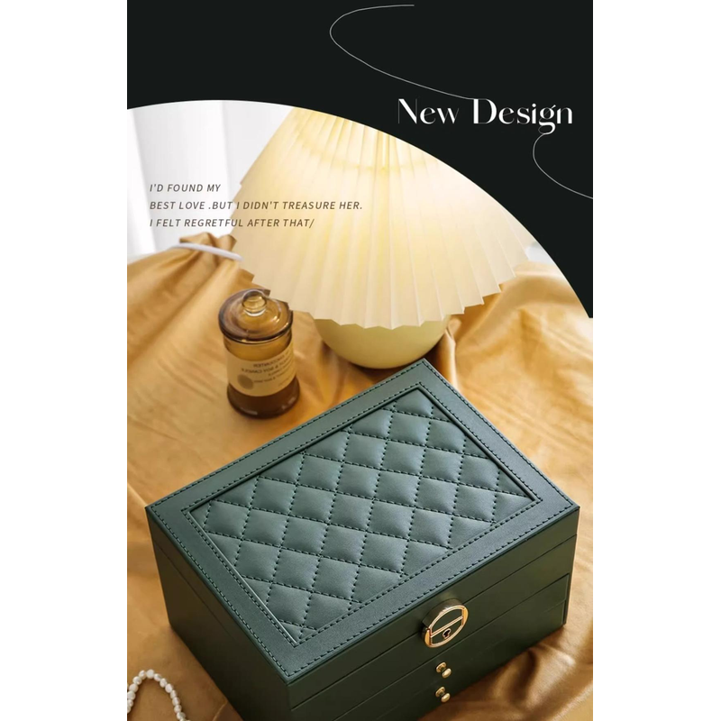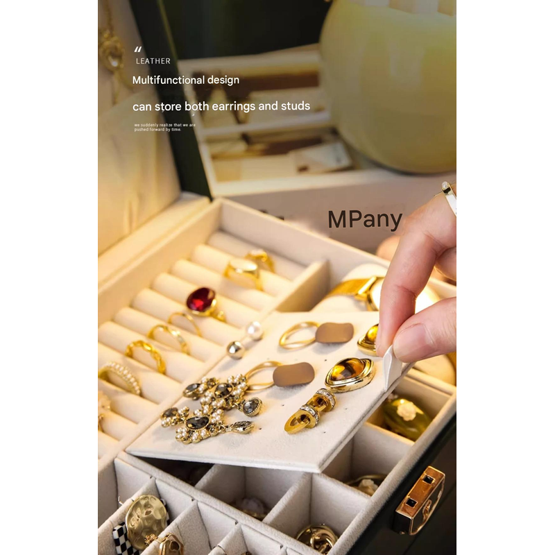 Large Capacity Jewelry Box Leather Three-Tier Drawer Accessories Storage Box Gold Jewelry Necklace Earring Bracelet Storage Box