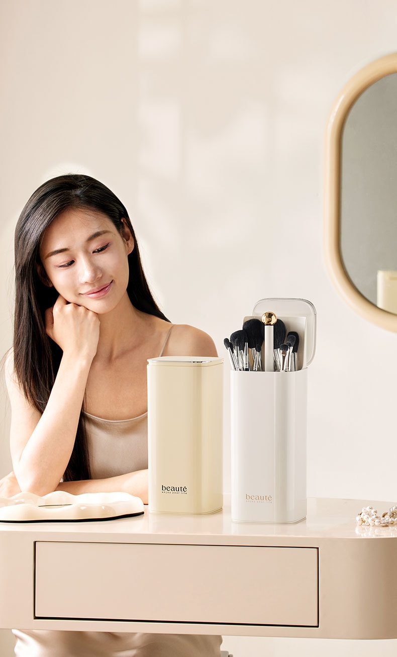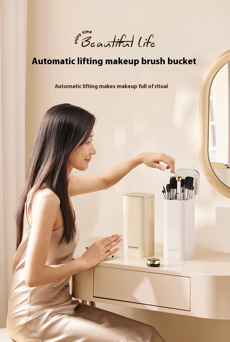 Large Capacity Light Luxury Automatic Lifting Makeup Brush Can Platinum