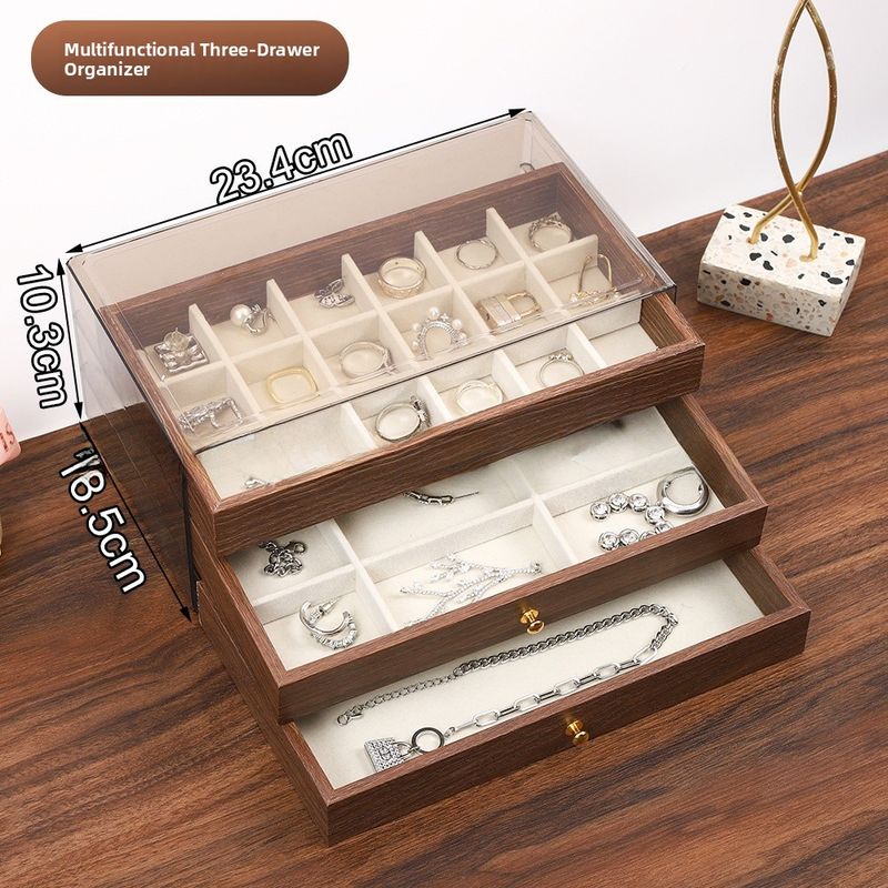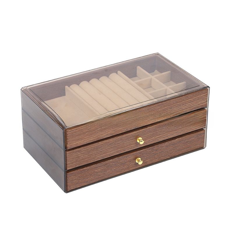 Featuring a sophisticated walnut wood grain pattern, this jewelry box adds a touch of elegance to any room while serving its purpose.