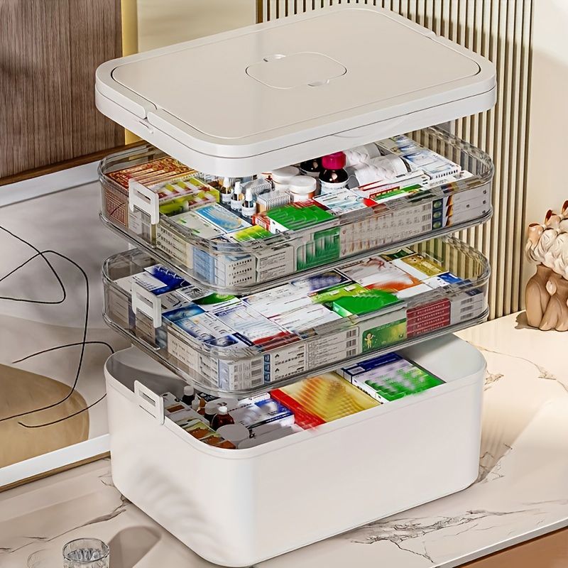 Large Capacity Multi-Layer Medicine Organizer and Usage Guide - Durable Waterproof Pill Box with Pill Storage Compartment, Suitable for Home and Travel Storage, Can Be Placed under the Bed, Easy to Carry, Ideal for Outdoor Travel Use.