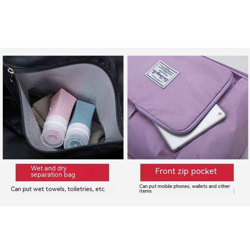 Large Capacity Short Trip Dry Wet Separation Fitness Swimming Hand Luggage Foldable Bag Light Purple 1PCS