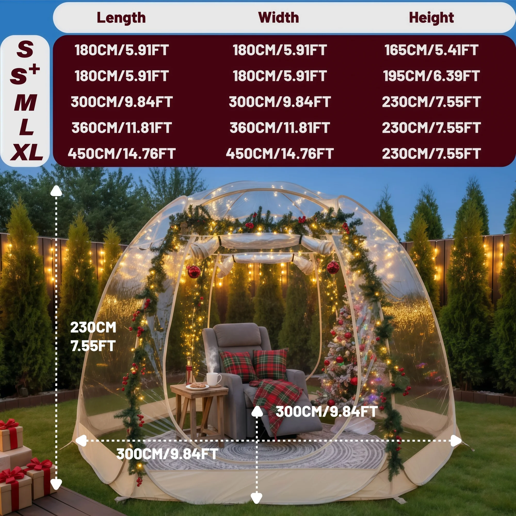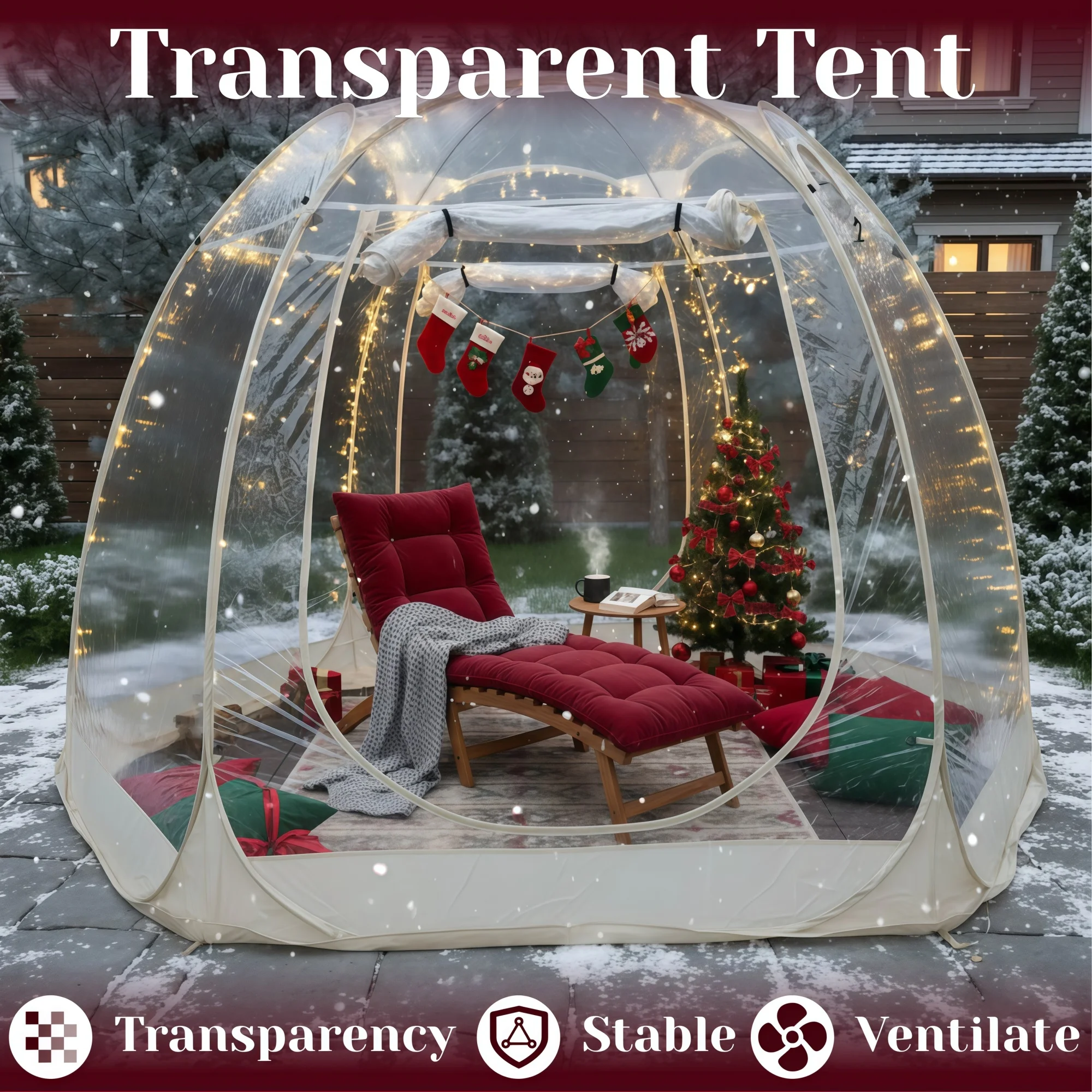 Large Instant Pop-Up Bubble Tent, Weatherproof Outdoor Igloo Screen House, Oversize Camping Pod, Patio Cold Protection