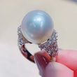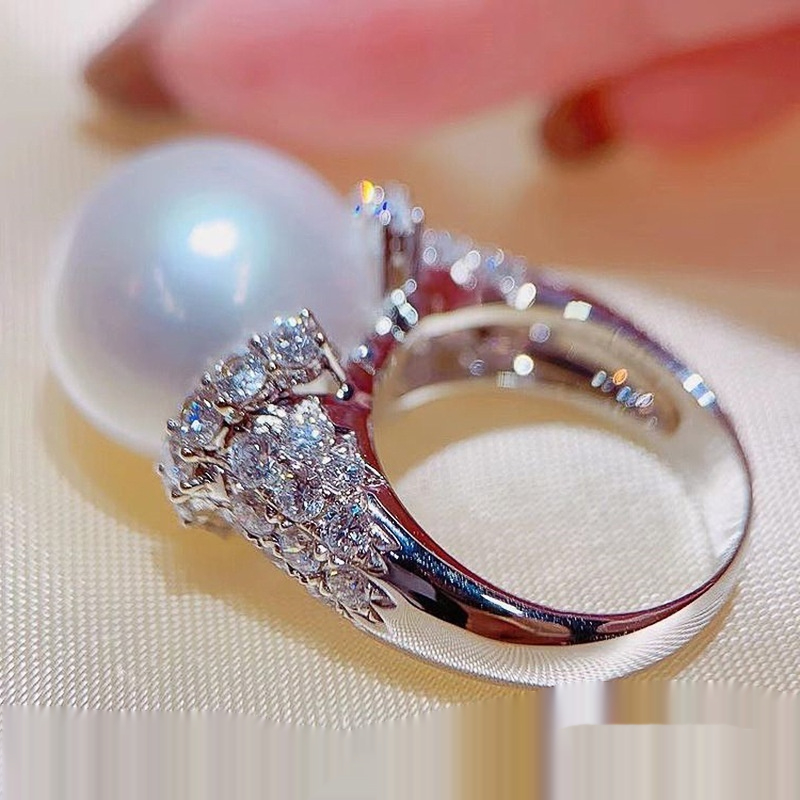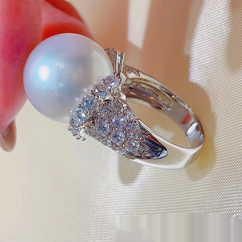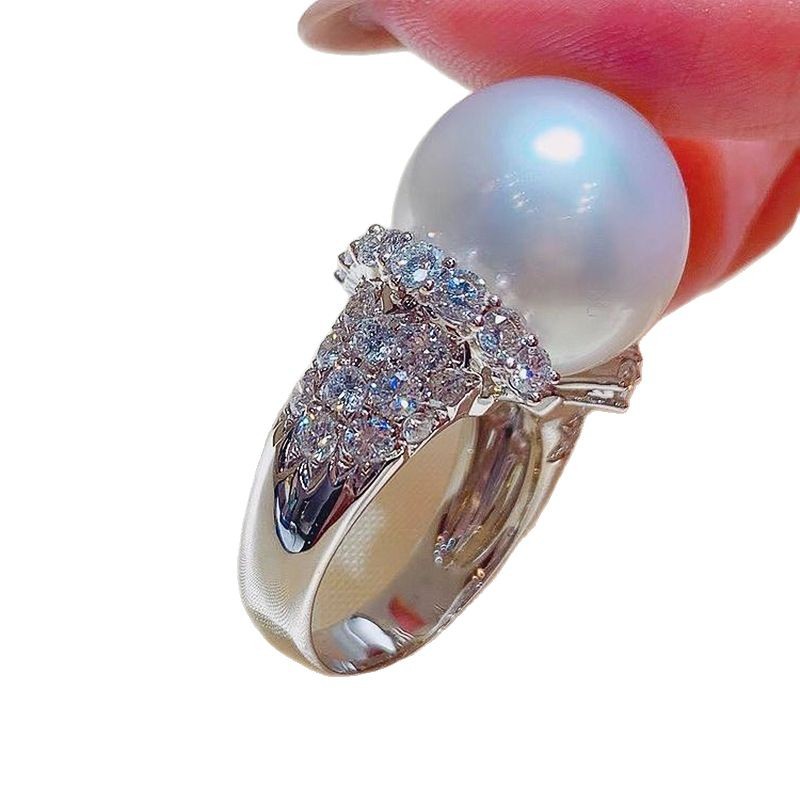 Large Pearl Full Diamond Luxury Inlaid Zircon Light Luxury Closed Pearl Ring White Gold Color No 10