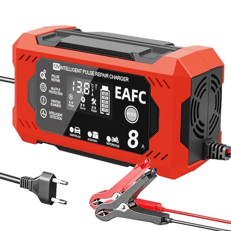 Large Screen Car Battery Charger 6A/8A/10A 12V Car Motorcycle Battery Charging Device Lead-acid Battery Smart Repair LCD Display