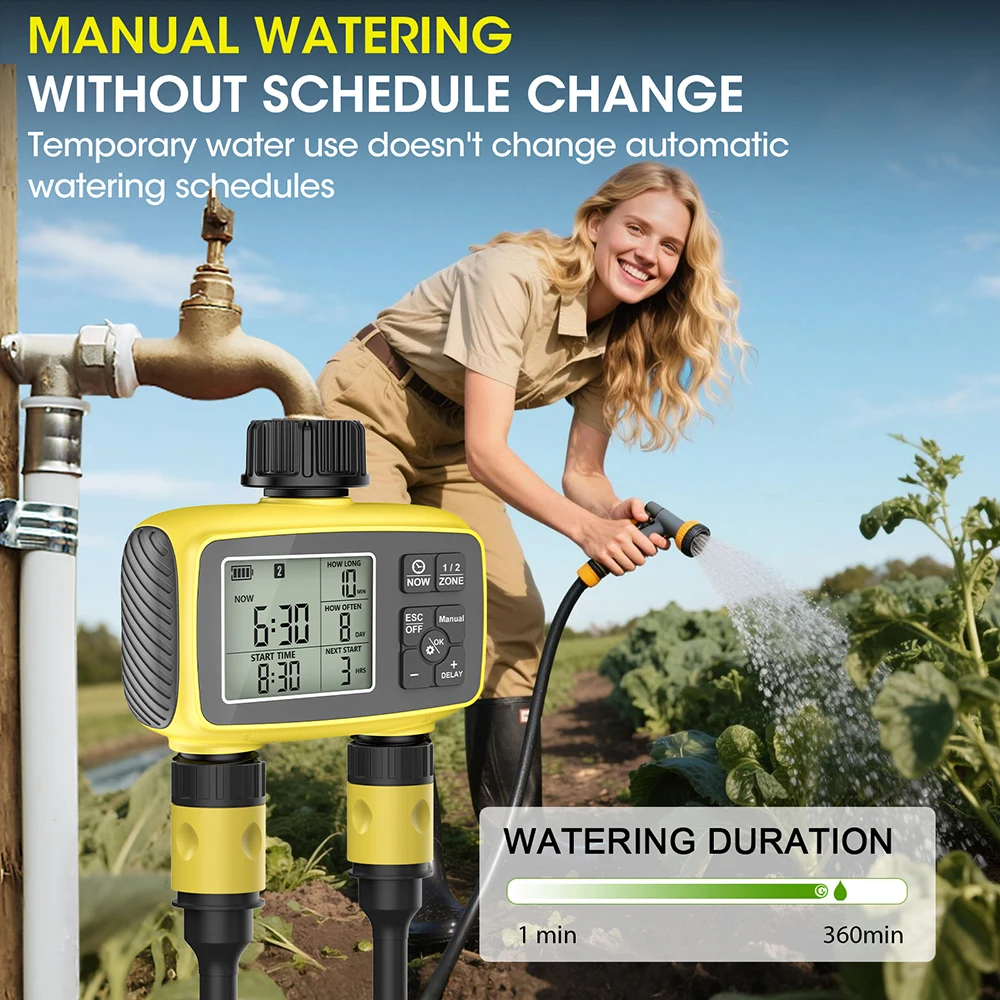 * Efficient Watering Control: Experience precise control over your watering schedule with the 2 Outlets Separate Automatic Watering Timer.