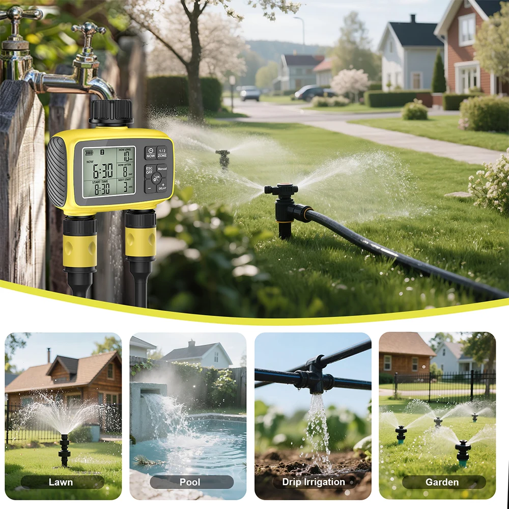 Large Screen Display Garden Irrigation Timer 2 Outlets Smart Water Timer Irrigation Control System Timed Water Value IPX5 Waterproof