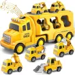 5 IN 1 TRUCK TOY - construction carrier truck toy includes a larger transport truck and 4 mini car (crane, mixer, bulldozer and excavator truck). The working part of these small engineering vehicles can be moved, and children will be immersed in building base. Toddler boys toys age 3-6 years old.