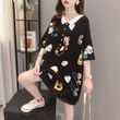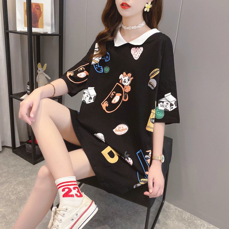 Large-Size Loose-Fitting Short-Sleeved T-Shirt Women'S Mid-Length Polo Shirt On Both Sides Black 2XL
