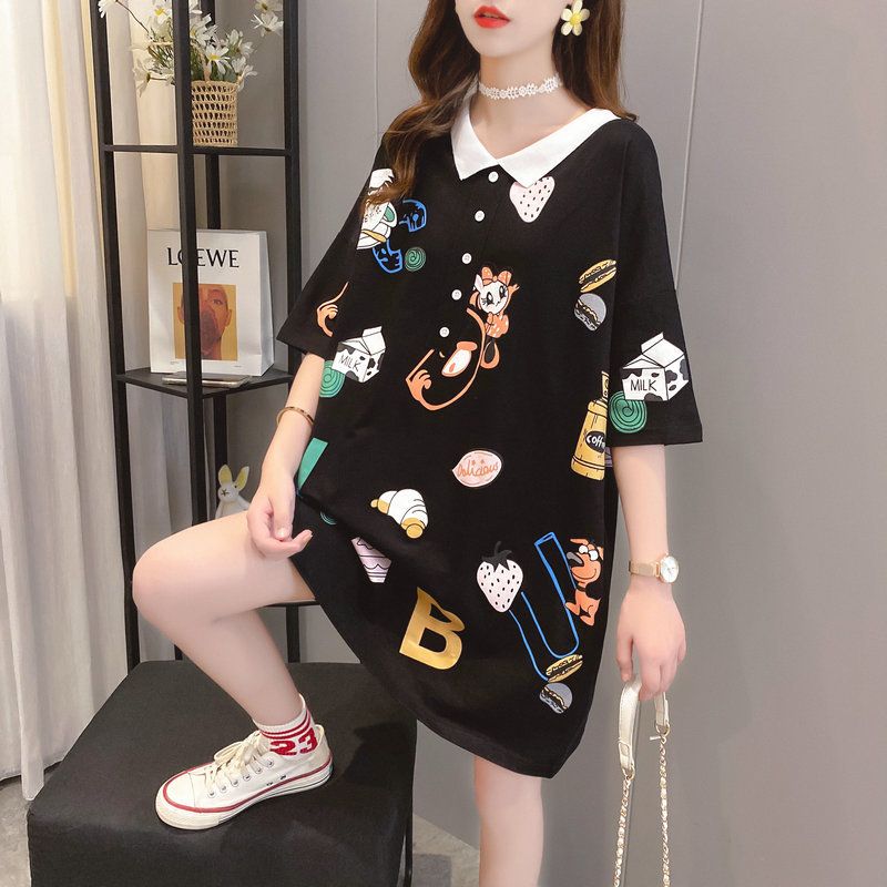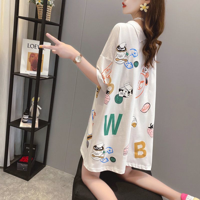 Large-Size Loose-Fitting Short-Sleeved T-Shirt Women'S Mid-Length Polo Shirt On Both Sides Pink M