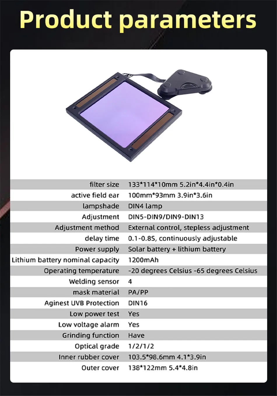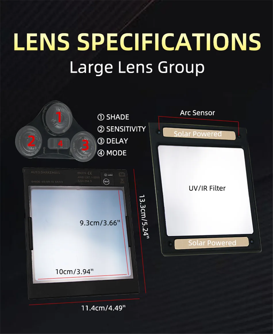 Large View Auto Darkening Welding Helmet Wide Shade 4-9/9-13 for TIG MIG ARC Cut and Grind