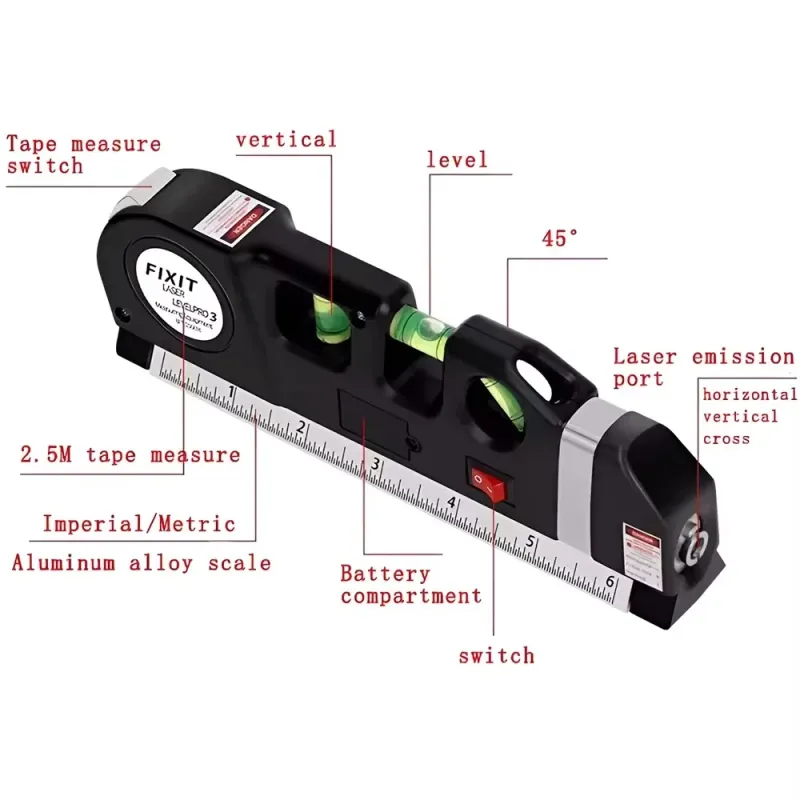 Laser Level Horizon Vertical Measure Aligner Standard and Metric Rulers Multipurpose Measure