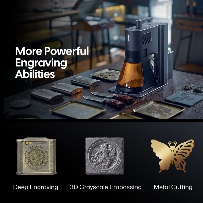 3:20W Dual Laser: 10X Speed & 0.0027mm Precision. Cut/engrave metals (gold, steel, etc.) and non-metals (wood, leather, etc.) at 10,000mm/s. Achieve 8K details with 2x higher accuracy (0.0027mm) vs similar engravers.