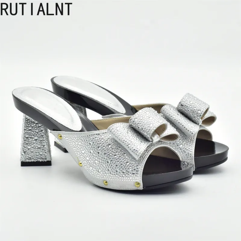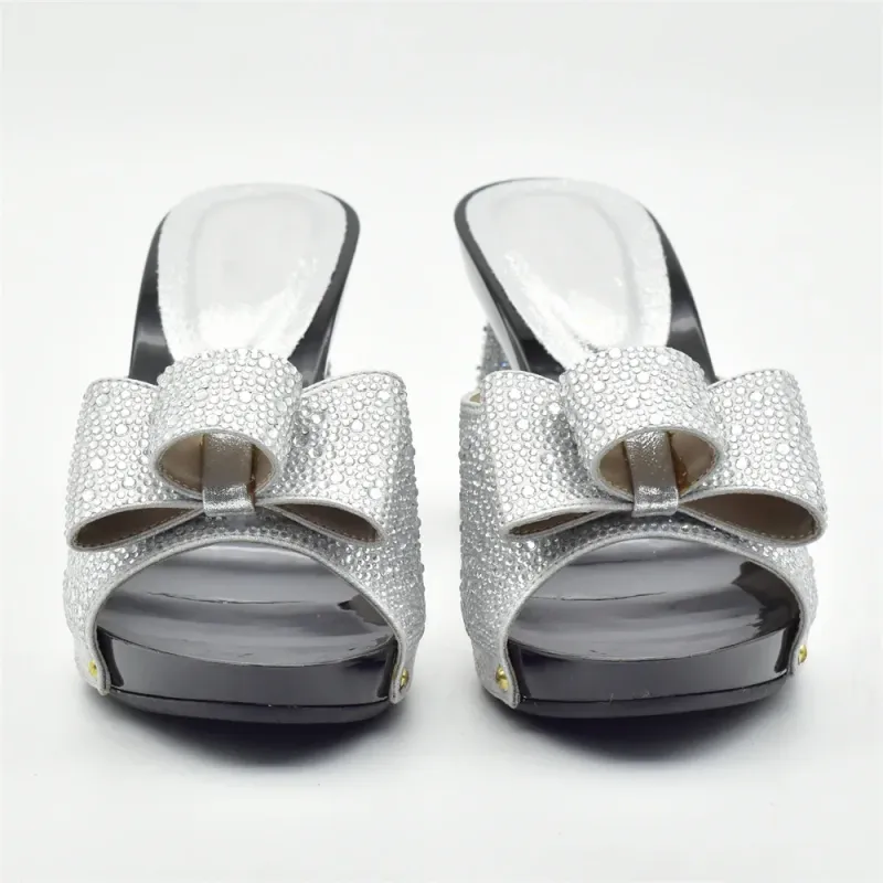 Latest Silver Color African Wedding Shoes High Quality Elegant Italian Women Pumps with Rhinestone Luxury Woman Shoe for Wedding