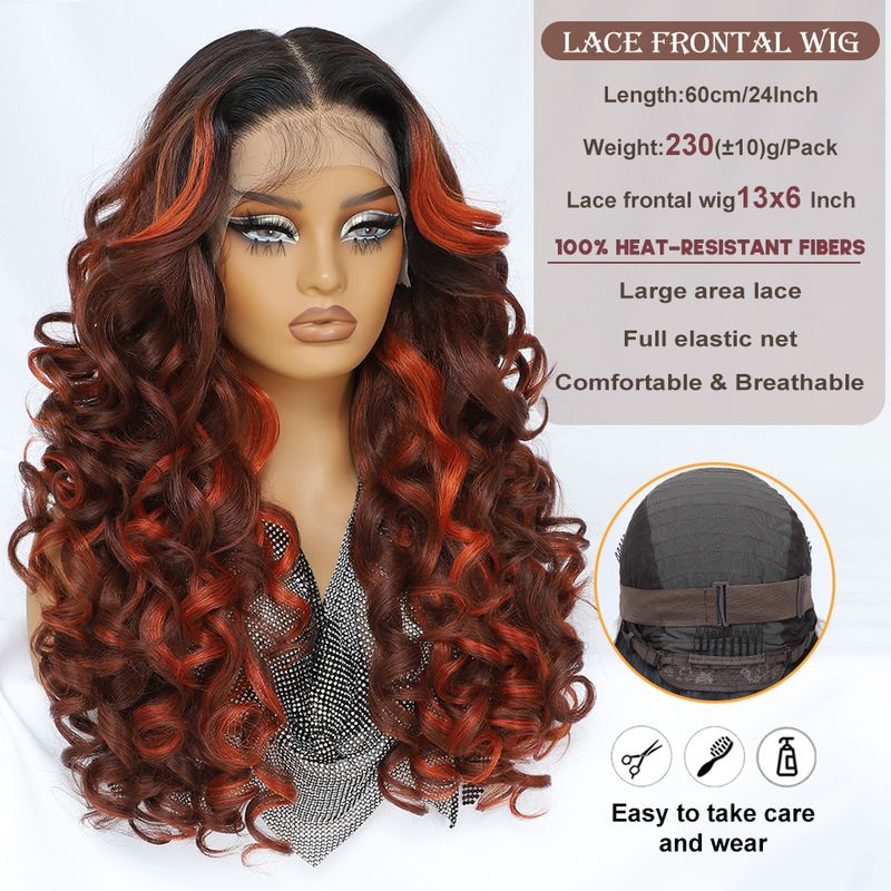 Latisha 13X6 HD 13X5X1 Synthetic Lace Front Wigs Curly Pre Plucked Lace Frontal Wig with Bangs for Women Highlight with Babyhair