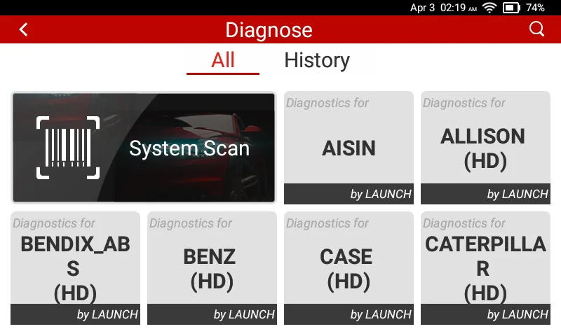 LAUNCH CRP129HD support read/clear DTCs, read live data stream and perform active test and services functions for ALL modules of Trucks including Engine system/SRS system/Retarder system/Transmission system/CAB Climate system/Unit Pump system/Electronical control system/Tail gas after-treatment system/Body system/ABS(anti-lock brake system)/Instrument System/Brake control system/Suspension system/Common Rail System/Natural gas system...etc.