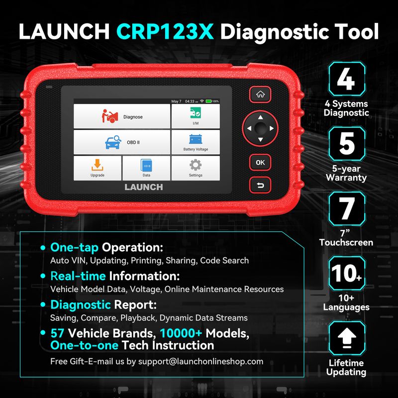 LAUNCH CRP123X is an enhanced scan tool specially designed for most 1996 and newer OBDII-compliant vehicles. OBDII diagnostics, including: