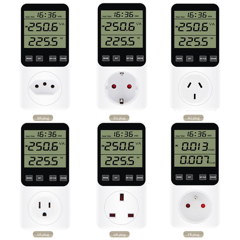 LCD Digital Power Meter EU US UK AU Plug Energy Meter Electronic Wattmeter Voltmeter Ammeter Electricity Cost KWH Monitor