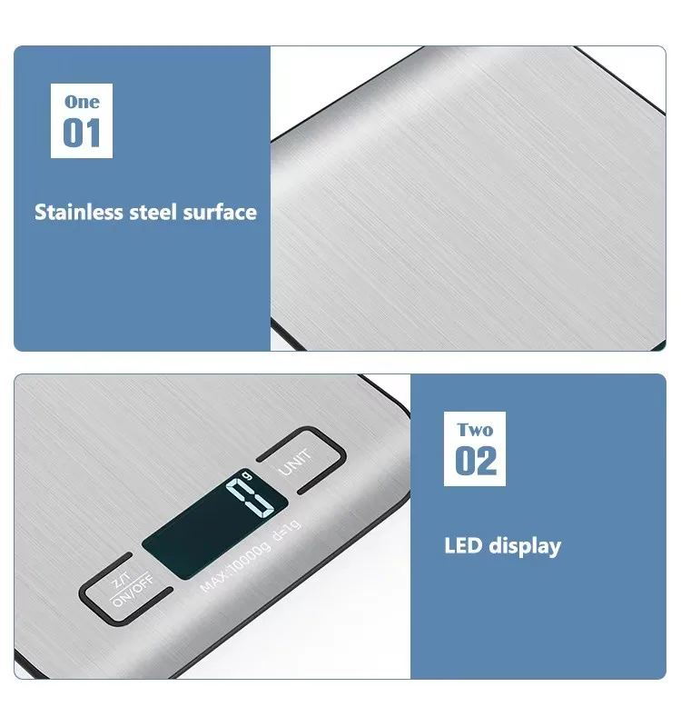 1.Accurate Measurement:The small postal scale can weigh up to 10kg.It uses 4 high-precision weight sensors,accurate to 1 gram.It offers multiple units of measure(g/kg/lb/oz/ml/milk ml).