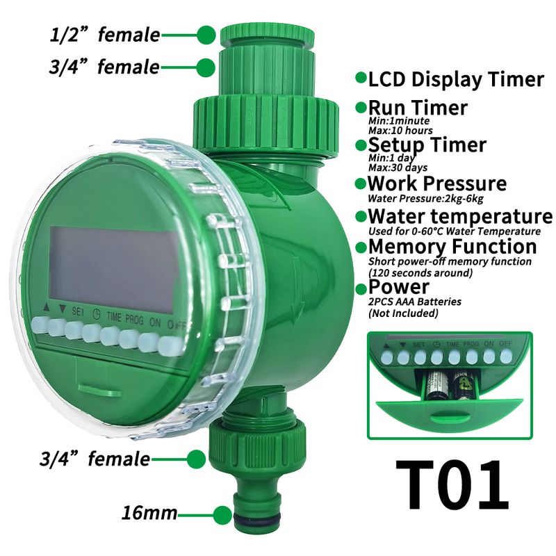 Automatic-- Features automatic programmable watering time, you can set the watering time for your garden when you are not at home.