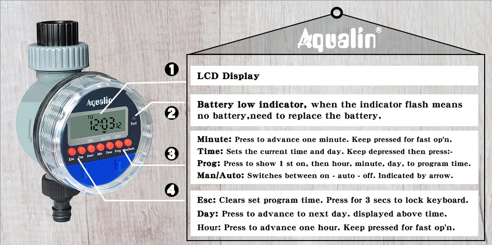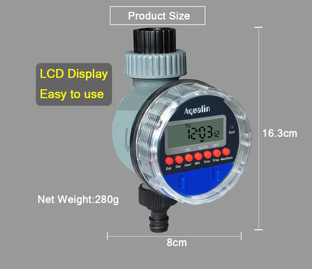 • LCD Display :The LCD display provides clear and easy-to-read information about the watering timer, making it simple to use and monitor.